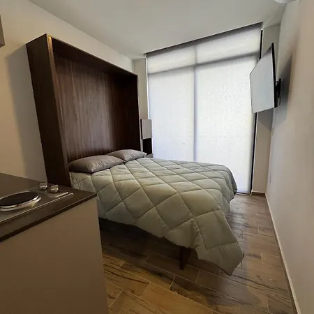 The 22 m² Furnished Loft In Ciudad Granja With Balcony Apartment Guadalajara offers easy entry to such city sights as Centro de Conveniencia Ciudad Granja, situated approximately a 5-minute walk away.